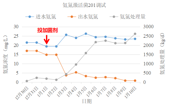 2.快速啟動污水硝化系統(tǒng),3天見效,15天內(nèi)實現(xiàn)出水氨氮達(dá)標(biāo)排放;